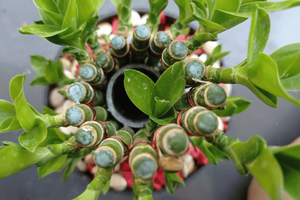 Lucky Bamboo is a popular indoor plant grown in water or soil with minimal care needs.
